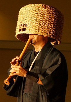 Ron Shakuhachi playing traditional and neo-traditional music on stage, in concert